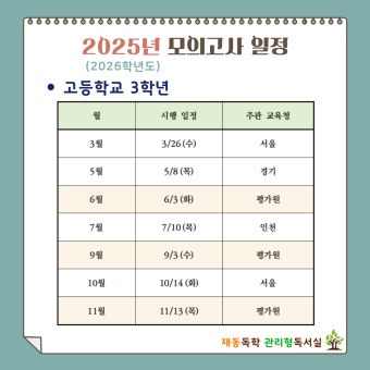 | 2025년 10월 14일 | 고1~3학년 대상 수능 전 마지막 전국 단위 평가인 **10월 학평** 시행. | 수험생 최종 점검 |